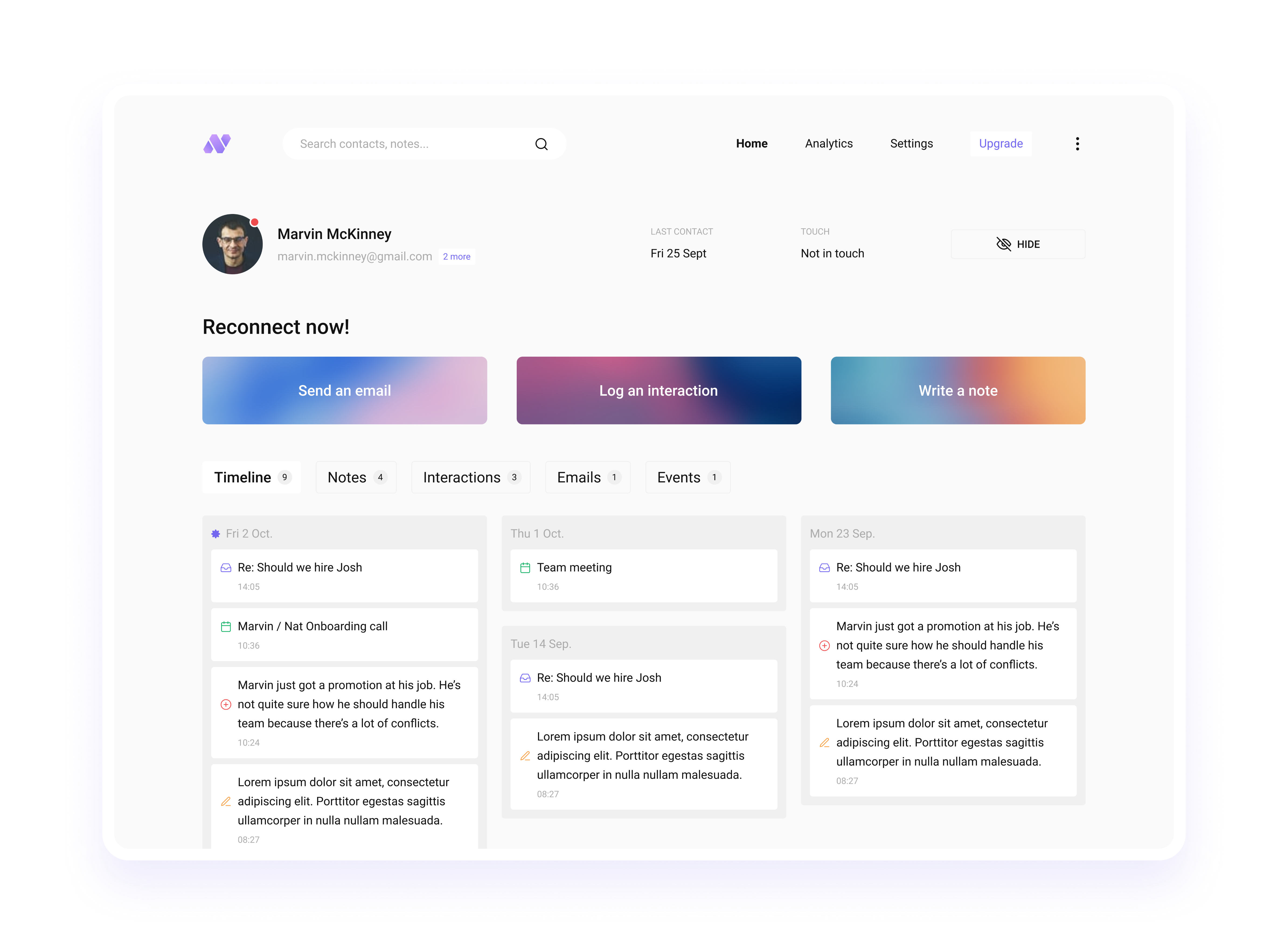 Nat is a CRM built from the ground up to be the best possible solution to stay in touch with contacts, clients and leads.