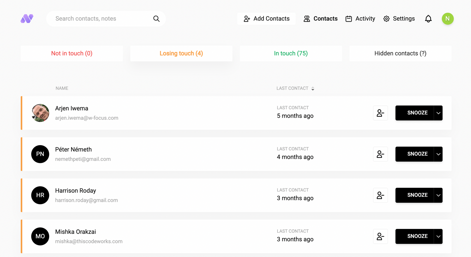 Your contacts are automatically categorised to help you identify relationships that need nurturing.