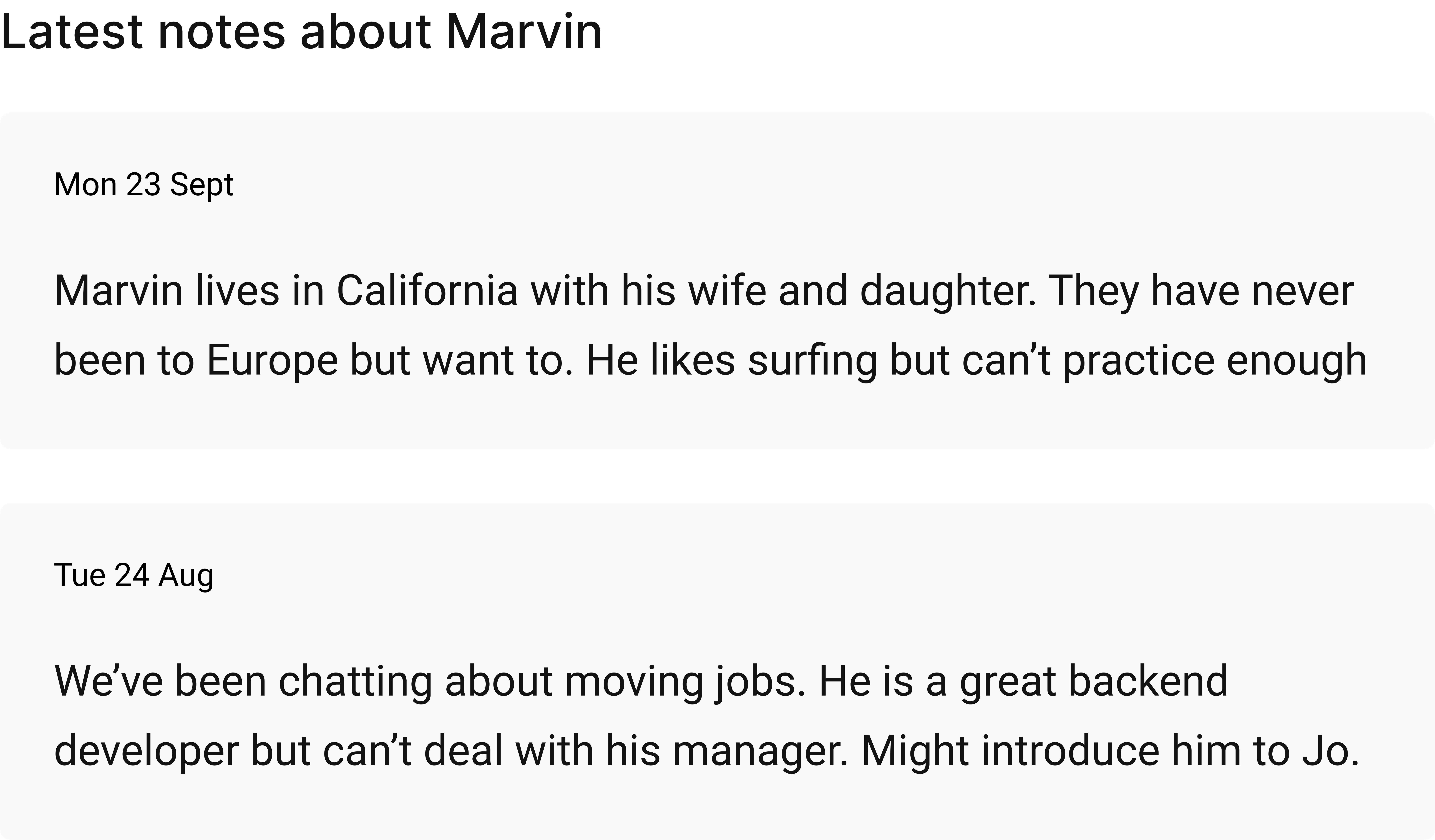 Our app makes it as easy as possible (literally) to take notes about people.